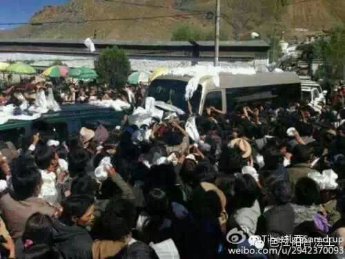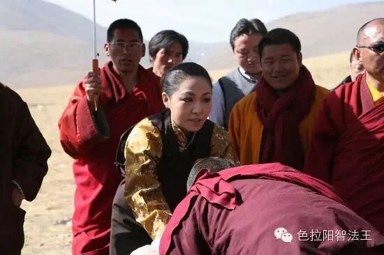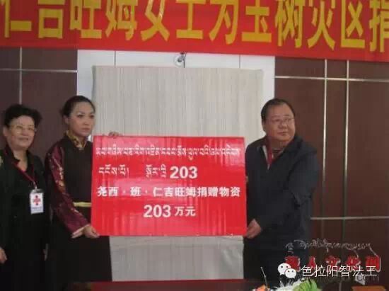 2010年4月,仁吉旺姆与高僧大德在玉树为地震受难者举行超度法会。