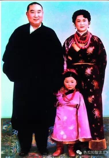此后,十世班禅严守藏传佛教中格鲁派戒律,从此不再作为出家人穿袈裟,只穿华贵藏袍,即使参加重大的宗教活动,也毫不避讳自己已有妻室。图为十世班禅与妻子女儿合影。